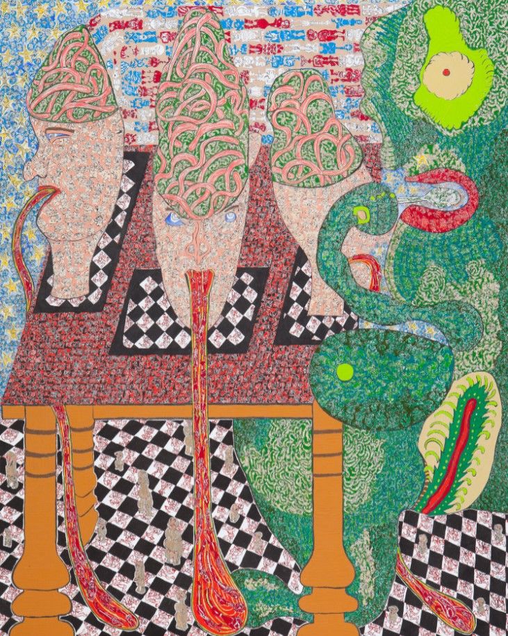 In the Great American Way, the parents eat their own. Here you have a parent who is too poor to provide for her four children so she decides to copy the Qing Empire of China who had ceremonies where they ate monkey brains from the live monkey. This continues the circle of poverty and oppression of the children. The parent has turned into a green monster and plays chess while she devours her children’s brains.