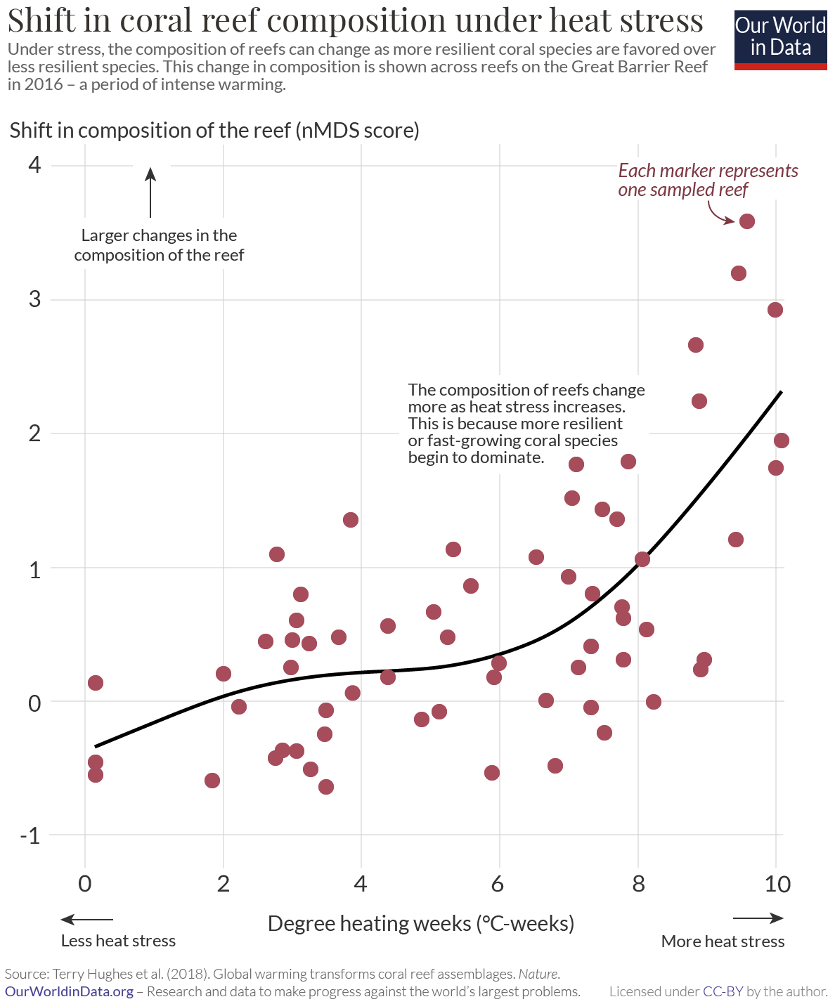 As we’ve seen, most of the world’s corals are under increasing pressure from bleaching. But they differ in how much pressure and rate that this has changed over time. What might explain these differences?