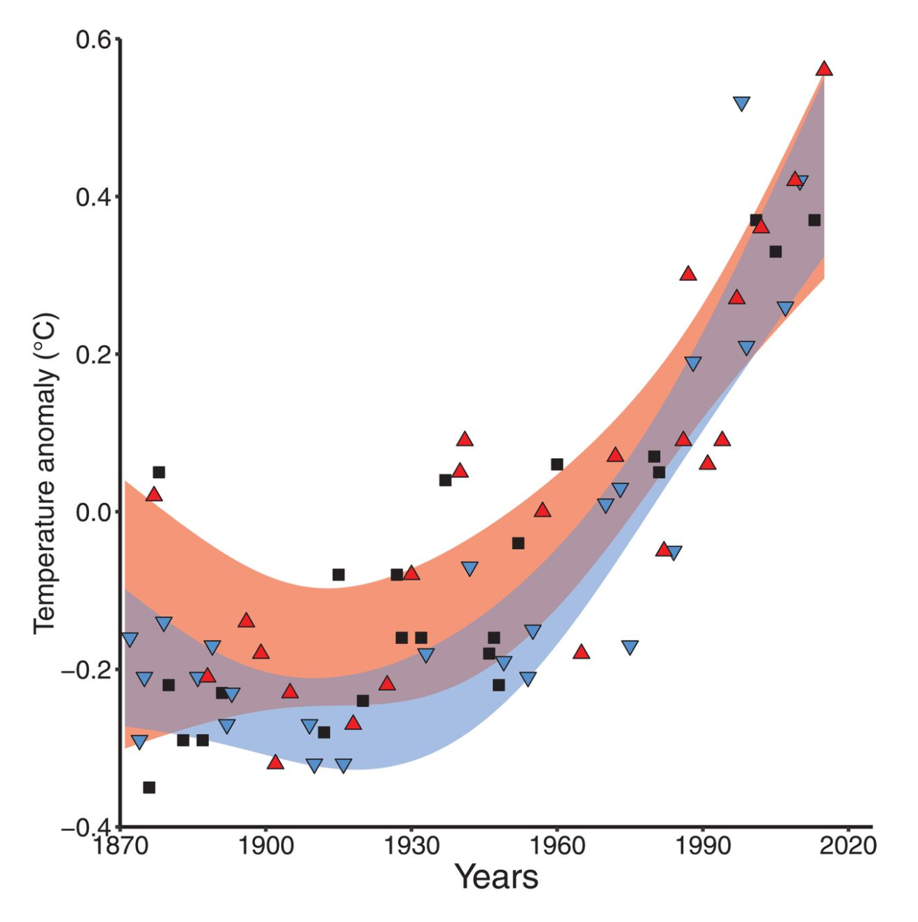 An important finding from this study was that there doesn’t seem to be a relationship between the average level of warming and the change in bleaching. The corals that had seen the largest rise in bleaching were not necessarily the ones that had encountered the biggest increase in average water temperature. This might seem counter-intuitive since bleaching is driven by warming waters. But it supports the understanding that it’s specific pulses of high temperature – in other words, large changes in the variability – that causes bleaching. It’s about larger extremes in temperature – often over the course of only a few weeks – rather than the background level that matters most.