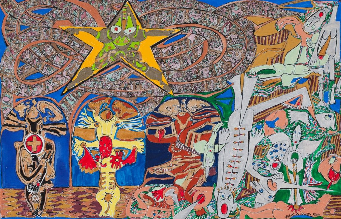 From film to the trinity to the massacres of the holy wars, humanity carries innate violence as its weapon of survival. The trinity comes from a compilation of all aspects of life and from the thoughts of personas that are filled with a film noir reality. Working in the film industry, we pray for jobs without sexual harassment and for a part that isn’t porn. We look into the wounded fragment of blue-collar workers who are altar boys, janitors, and house cleaners. In the paradigm of life we give up a limb or two to feed our children.