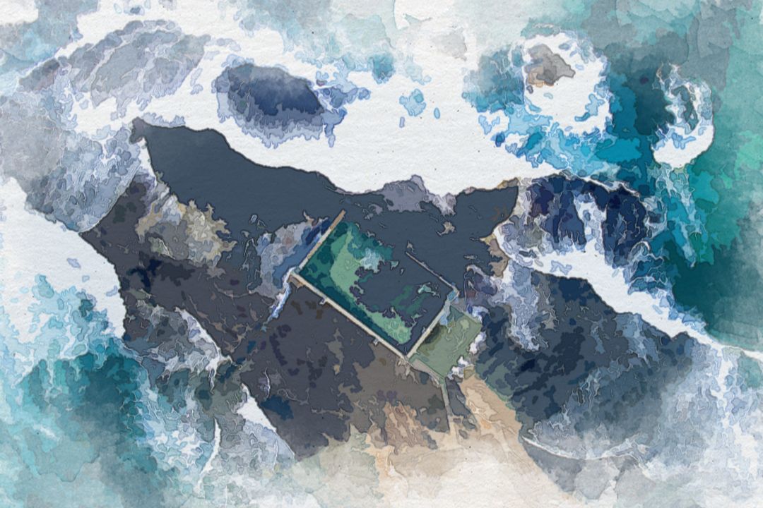 Under the boundless sky, where the horizon danced in a haze of blue meeting blue, the coastal town of Möbius stretched languidly. Its centerpiece, a man-made pool, stood in stark contrast to the unruly waves that crashed against its firm boundaries—a testament to human ingenuity amidst nature's wild canvas. Sophia, with her whimsically tilted hat, found herself perched on the edge of this anomaly, toes grazing the cold, still water that defied the ocean's chaotic symphony.