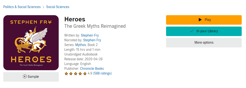 For anyone that hasn't discovered the audio version of Stephen Fry's series on Ancient Greece, you are missing a real gem. His voice and narration are exquisite. I would love to understand how he created these books and how did he research the stories and pull them together in the way he did. It is pretty incredible.