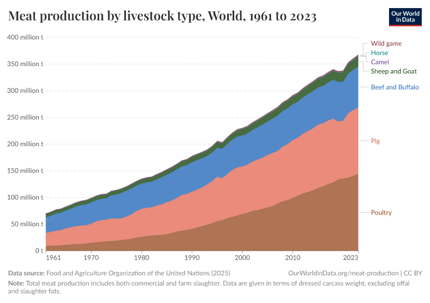 This is because incomes across the world have increased, meaning more people can afford the meat products that were previously unavailable to them. We dig a bit deeper into this distribution of mammals in a related article.
