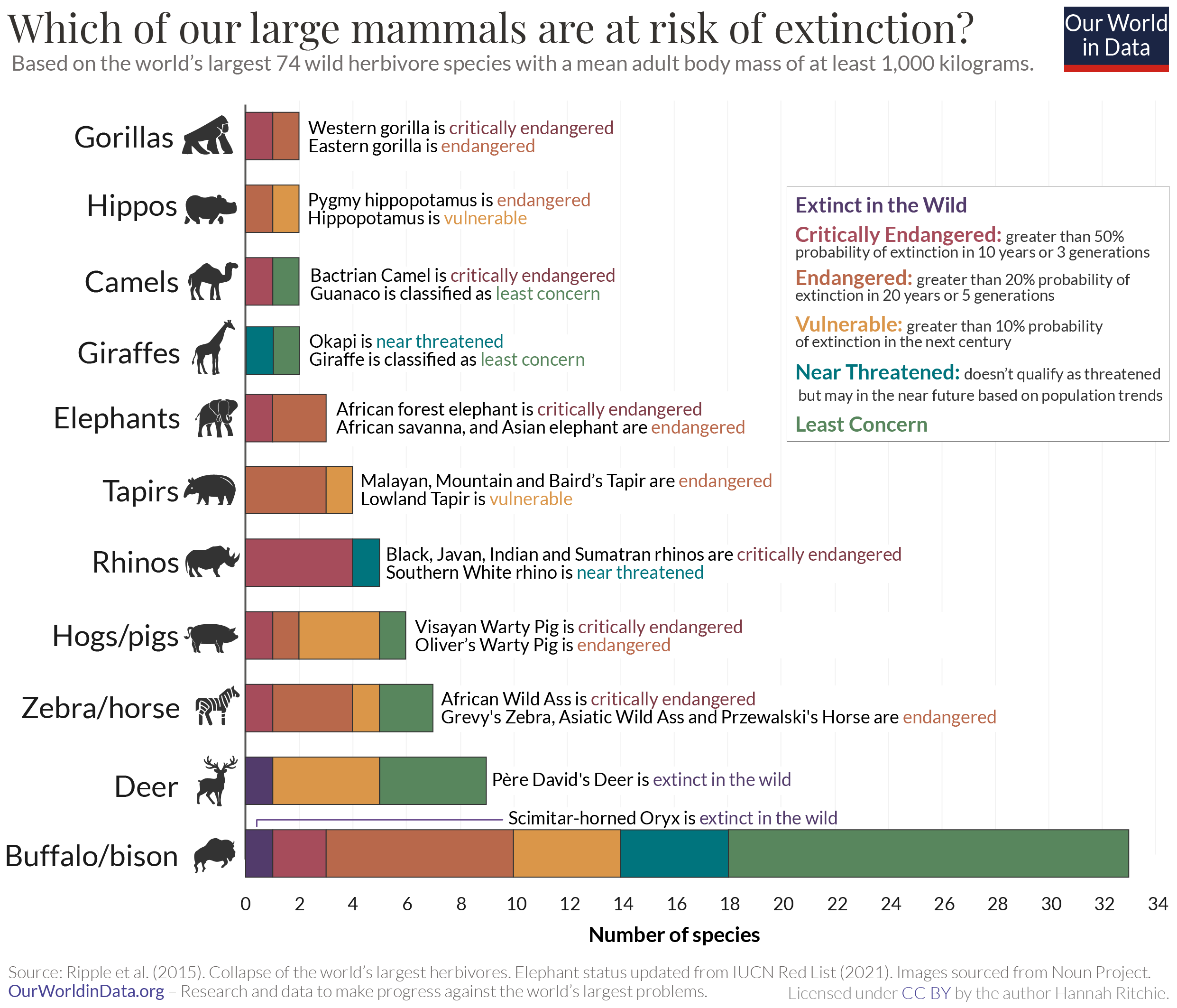 - Elephants, rhinos, gorillas: how many of our largest mammals are at risk of extinction?