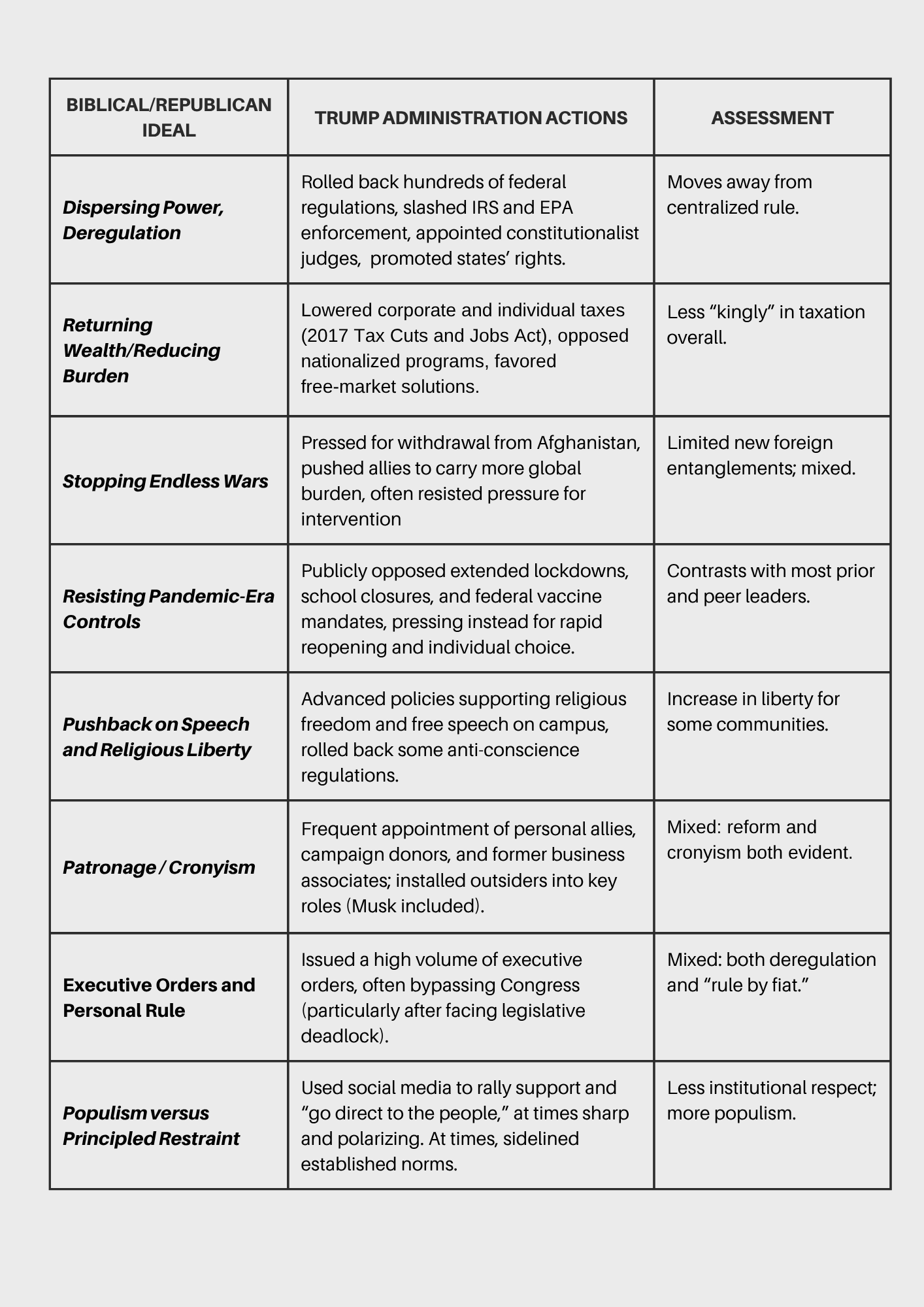 Let’s examine Trump’s record alongside our established kingly criteria: