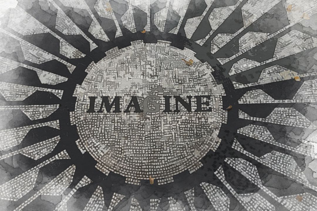 In the midst of a bustling metropolis, where skyscrapers reached for the heavens and neon lights painted the night sky, a small haven of tranquility existed—a sunburst mosaic laid upon the pavement, bearing the word "IMAGINE" as its centerpiece. Here, amidst the ceaseless motion of urban life, Sophia and Alexander often found solace, their minds entwined in the delicate dance of ideas and ideals.