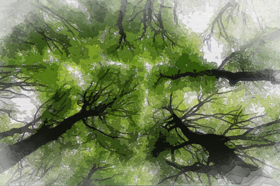 Shifting focus, the observer stood under the lush canopy. The once-distant ceiling now arched overhead, a vibrant mix of colours celebrating photosynthesis – the essence of life. The forest's crown displayed a range of hues, each telling a story of growth, sunlight, and the cycle of life and decay.