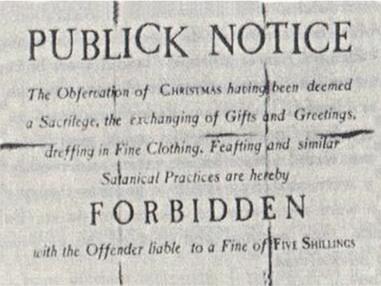 In 17th century Britain, Christmas could get you killed. Christian opposition to Christmas was one of the factors that led to the English Civil War. The Puritans wanted to purify the church of everything they saw as Popish or pagan — and Christmas was one of their targets. Meanwhile in Scotland, the Presbyterians found Christmas so unbiblical that they suppressed it as early as 1583. King James, I actually had to force Scotland to reinstate Christmas through military force, and two decades later the Scottish Church banned Christmas again!
