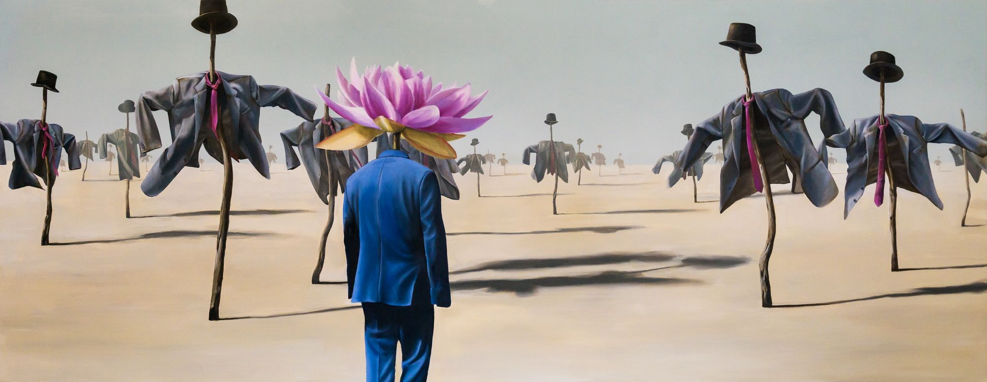 Another question arises - what are these scarecrows protecting? It cannot be any form of sustenance or material wealth, for the land they inhabit is a barren wasteland. Is it something internal? Those that traded the flower for the tie, the dream for security, and opted for the safety of convention aren’t simply guarding the treasure to be found in pursuing a dream. They are guarding their egos, their hearts, the notion that the reason for their failure was environmental - nothing could survive in this inhospitable desert - rather than them.