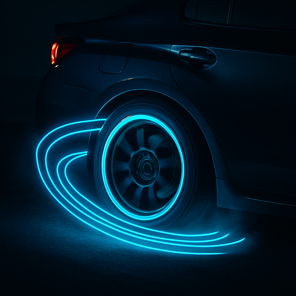 A drifting car wheel leaves perfect circular trails — Pi, eternal, enclosed.