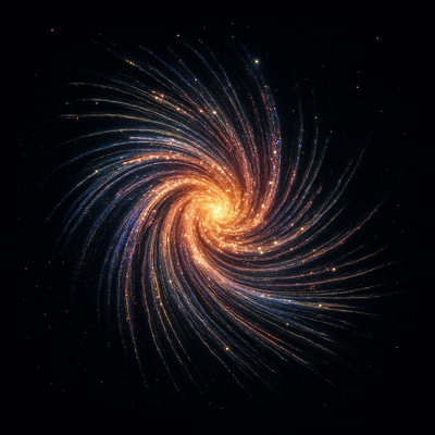 Each dent curves toward the same glowing core: unity.
