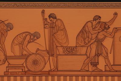 (Image: A detailed classical painting depicting a family scene in ancient Greece or Rome. The image shows parents engaged in conversation or instruction with their children, perhaps in a domestic setting with elements suggesting learning or civic life, such as scrolls, busts of philosophers, or a view of public buildings in the background. The children are attentive, reflecting the transmission of knowledge and values across generations. The overall impression is one of quiet dignity and purposeful familial interaction, emphasizing the home as a place of early moral and intellectual development.)