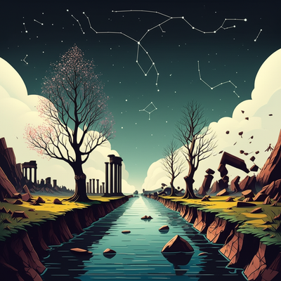 (Image: A detailed, stylized illustration depicting a wise, elderly figure with a thoughtful expression, perhaps holding a compass or a scroll, standing on a precipice overlooking a landscape simultaneously showing scenes of intense conflict (distant smoke, marching armies) and peaceful reconstruction (people rebuilding, fields being tilled). The figure's posture suggests contemplation and a burden of responsibility, with subtle rays of light emanating from their head, symbolizing wisdom and foresight.)