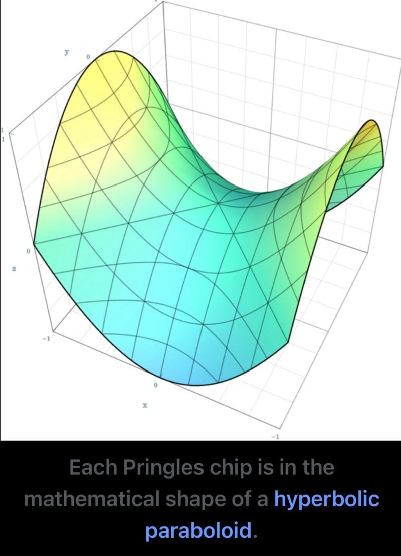 That image? That’s a hyperbolic paraboloid — the saddle-shaped surface that defines every Pringles chip. It’s not a cute curvature; it’s a geometric beast.