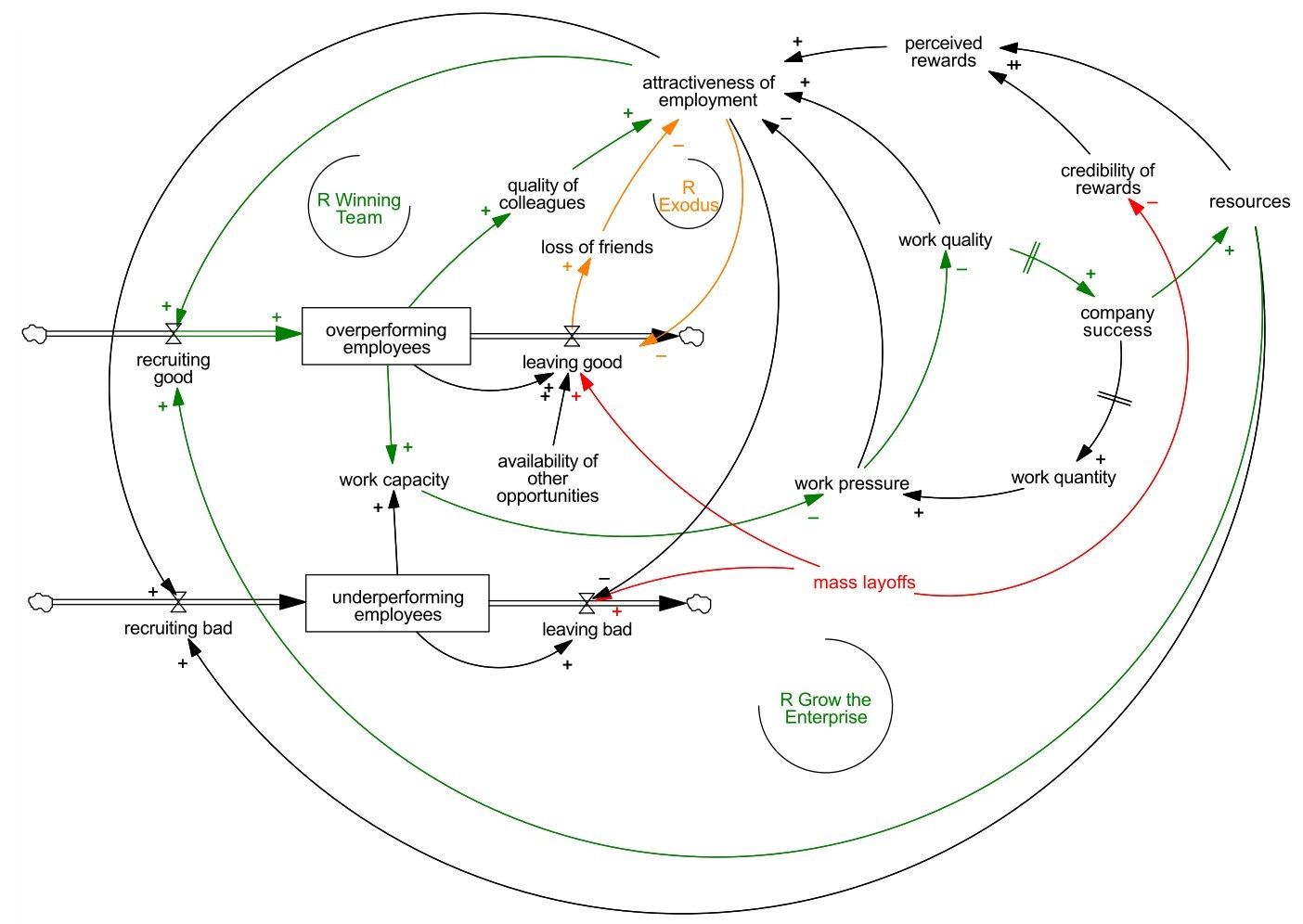 On a side note, I’m not the only one to address the recent Twitter news with a systems-thinking perspective. Tom Fiddaman did a blog back in November called “Controlled Burn, Wood Stove, or Dumpster Fire”. His model was focused much more on the organizational structure of the workforce at Twitter and is highly interesting, and I suggest you give it a read.